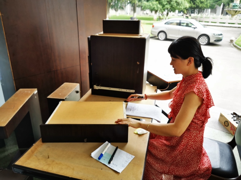 “从办公室、教研室、实验室都是每一个设备,每一间房都是责任到个人,这样我们在搬迁的过程当中就能做到精细化,从东校区出来到新校区接收都做好登记验收。”理学院党委书记朱金介绍,学院的搬迁就是精细化、点对点,节俭搬家,理学院的家底比较薄,所以每一样东西都不能够浪费,能用的全部搬过来,包括实验室的一个铁钉、一个小铁块,都一个都不落地清理搬过来。学院很多的家具和设备都是20年前的,搬迁过程中散架的,都用502胶来粘连起来。学院有一个教研室, 10位老师有8个不同样式的桌椅。条件有限,资源紧张,国资处特别增加了一部分老师和研究生工位,让紧张的资源得到一定程度的缓解。
