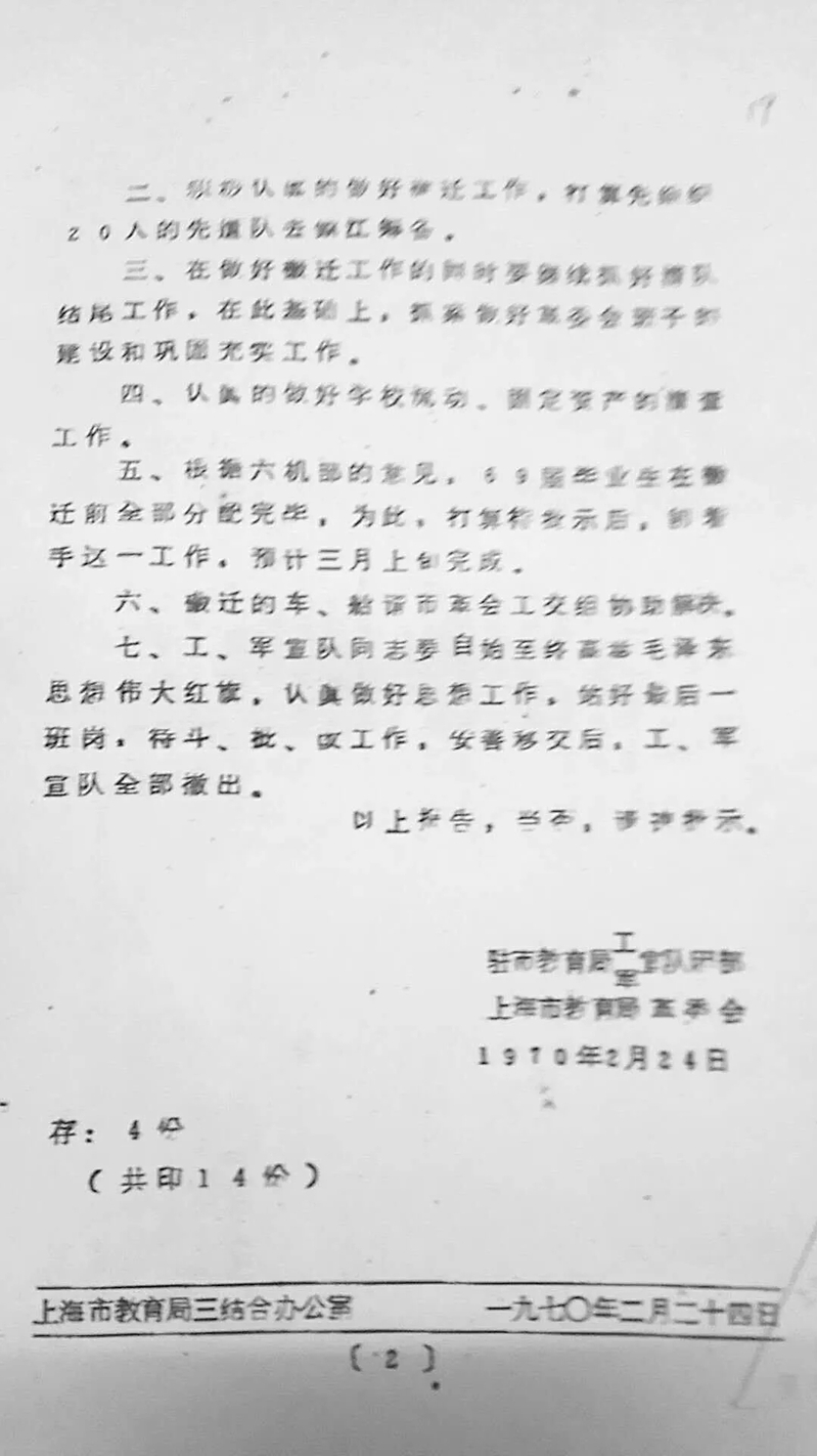 为了落实六机部军管会的决定,驻校工宣队、军宣队把学校搬迁作为首要任务,要求一切为了搬迁,一切服从搬迁,不允许有任何干扰。在那样的政治压力下,群众中的许多思想和实际困难等问题也就不了了之了。