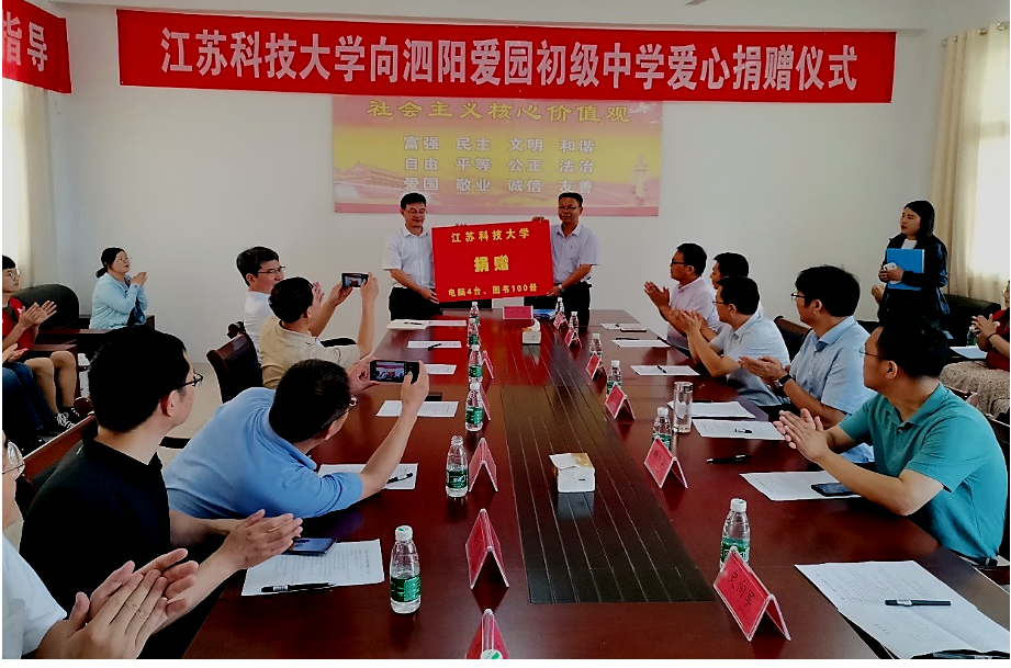 7月16日上午,校党委常委、组织部长李恒川一行来到爱园镇爱园初级中学看望了大学生支教团,并询问中学教学情况。经前期扶贫队员周小卫调研发现学校教师笔记本电脑紧张,李恒川代表学校向爱园初级中学捐赠包括4台联想牌新电脑(包括2台笔记本)和100本科技旧图书等一批教育物资,用于改善教学质量。