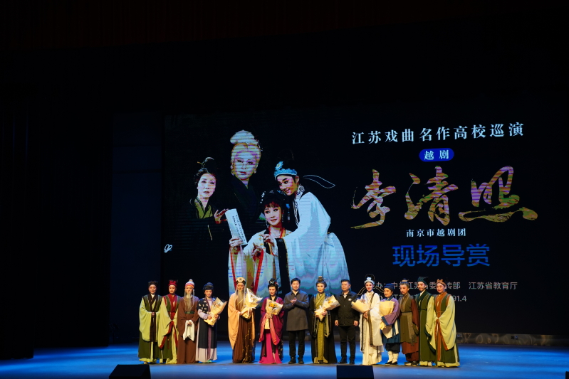 3月6日,由中共江苏省委宣传部和江苏省教育厅联合主办的2022年江苏省戏曲名作高校巡演——越剧《李清照》在安博网页版登录入口长山校区船苑剧场举行。安博网页版登录入口党委常委、副校长胡爱祥, 南京市演艺集团、党委委员、副总经理、南京市越剧团团长杨庆锦出席本次活动,师生代表800余人到现场观看。