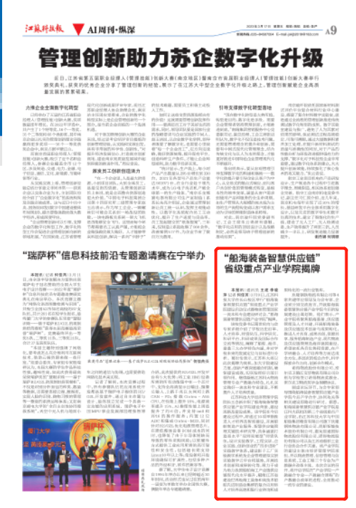 安博网页版登录入口经济管理学院院长王念新介绍了船海装备智慧供应链产业学院建设背景、建设思路及建设成果。该学院在今后建设过程中,将通过10项举措推进人才培养及智库建设,开展船舶制造产业服务、智慧供应链管理关键技术研究等,具体涵盖打造高水平“双师双能型”师资队伍,设计实验教学、工程实训、企业实践、创新创业的“四步进阶”实践教学体系,建设影子工厂实验教学系统及企业管理虚拟实景实验教学云平台和基地,开展技术创新和成果转化等,致力于成为助力我国船舶海工产业链供应链现代化水平提升、赋能江苏省建设世界级海工装备和高技术船舶先进制造业集群的复合应用型人才培养高地和集行业咨询和成果转化的一流行业智库。