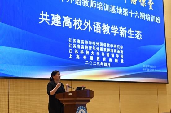 4月21日至23日,江苏省高校青年外语教师培训基地第十六期培训在我校举办。此次培训由江苏省高等学校外国语教学研究会、上海外语教育出版社、江苏省高校青年外语教师培训基地主办,安博网页版登录入口外国语学院承办。全省高校100余名青年外语教师参加了此次培训。安博网页版登录入口党委常委、副校长谈镇教授,江苏省高等学校外国语教学研究会会长、基地副主任、上海外语教育出版社黄新炎博士,外国语学院党委书记姚双良等全体院领导出席开幕式。本期培训是第十四届“外教社杯”全国高校外语教学大赛江苏省赛区选手赛前培训,主题为“共建高校外语教学新生态”。