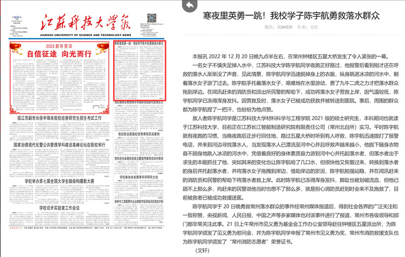 《安博网页版登录入口报》作品《寒夜里英勇一跳!我校学子陈宇航勇救落水群众》(作者:文轩;责编:李巍男)获文字类二等奖;《安博网页版登录入口报》作品《是退役士兵也是抗疫新兵 “老兵防疫特别行动小组”志愿守护“疫”线》(作者:万旻、谢凌燕、周珂;责编:李巍男)获文字类三等奖;《安博网页版登录入口报》作品《从小竹筏到大轮船》(作者:杨金龙;责编:李巍男)获副刊类三等奖;安博网页版登录入口微信公众号作品《江科大,是……?》(作者:陶淑琴、李沐轩;责编:王文强、罗文)获三等奖;安博网页版登录入口微博、抖音、快手、视频号等新媒体作品《盛世华诞,共唱美丽中国!》(作者:张薯云、缪红铭、常宇航、李家贤、许铮、徐荣晨;责编:王文强)获三等奖。