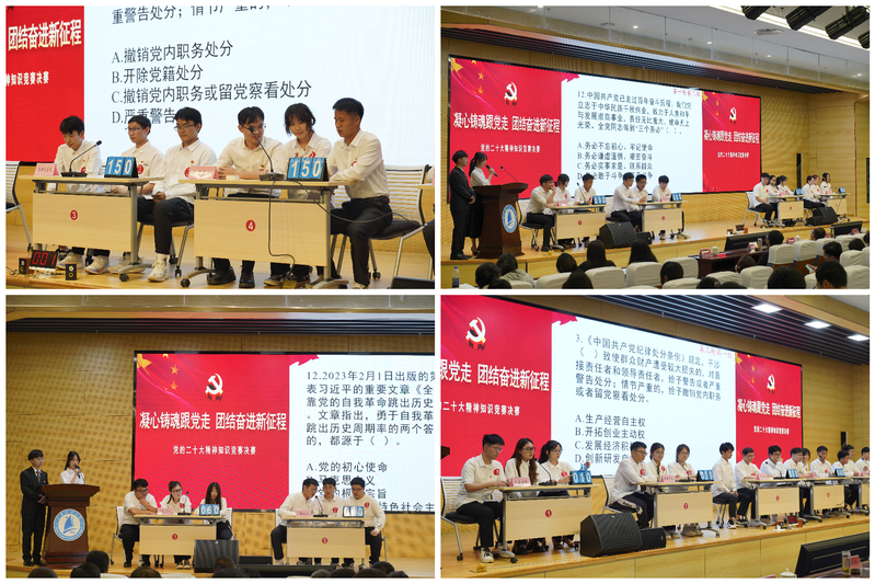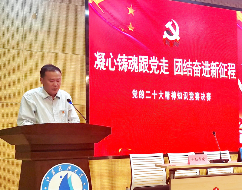 为深入开展学习贯彻习近平新时代中国特色社会主义思想主题教育,持续推动学习贯彻党的二十大精神走深走实,引导广大学生坚定不移听党话、跟党走,争做有理想、敢担当的、能吃苦、肯奋斗的新时代好青年,6月2日下午,“凝心铸魂跟党走,团结奋进新征程”党的二十大精神知识竞赛决赛在长山校区图书馆B105报告厅举行。校党委副书记汤建,党委常委、组织部部长李恒川出席本次大赛。党务工作专员姚允柱担任大赛指导专家,部分机关部门负责人、各学院书记、副书记、组织员、学生党支部书记、学生代表现场观摩比赛。