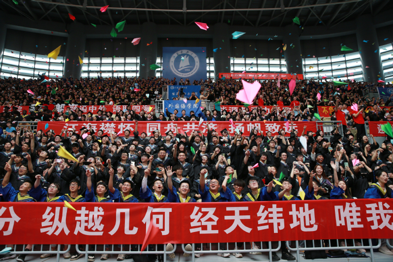 愿此去前程似锦,再相逢依然如故。依依惜别时,周南平临别赠言,“我只想祝你聊天框里发出的哈哈哈都是真的开心;祝你将来遇到的甲方和老板都善解人意;祝你拥有坚定不移的发际线和健康的颈椎腰椎;祝你永远能抱住情绪低落的自己;祝你终将活成自己想要的模样;祝你永远有人惦念和祝福!”纵有千般不舍,仍需扬帆起航。“愿你们如同手中的纸飞机一般,翱翔天空,各自奔腾!”在校长的祝福中,毕业生们放飞手中的纸飞机,伴着掌声,毕业生们将故事和回忆留在江科大,让希望与梦想翱翔在未来。