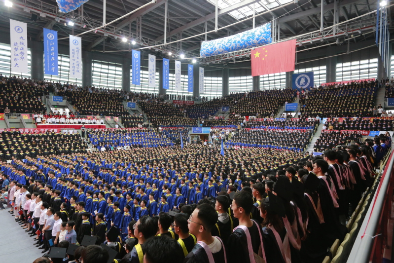 “今天以后,你们就要离开心中的‘浪浪山’,去各自的世界里做一个‘大人’了”,周南平细数诗意青春里可爱有趣的细节:“作为最后一批‘住客’,你们拥有着对悠然见南山的南校区、外号‘小牛村’的西校区的独家记忆;你们选修到了令人羡慕的潜水、浆板、皮划艇课程,划起了海韵湖第一年下水的端午节龙舟;你们吃到过江科大专属定制月饼、文创雪糕;你们用文理大楼的光学望远镜观测过中秋圆月、灿烂星河;你们看到了校园里天鹅宝宝的破壳而出;你们更见证了学校被遴选进入江苏高水平大学的行列.....”他希望这些母校留下的浪漫记忆,在毕业生们心中化为澎湃的爱意,帮助他们成长为活泼、善良、纯真的“大人”。