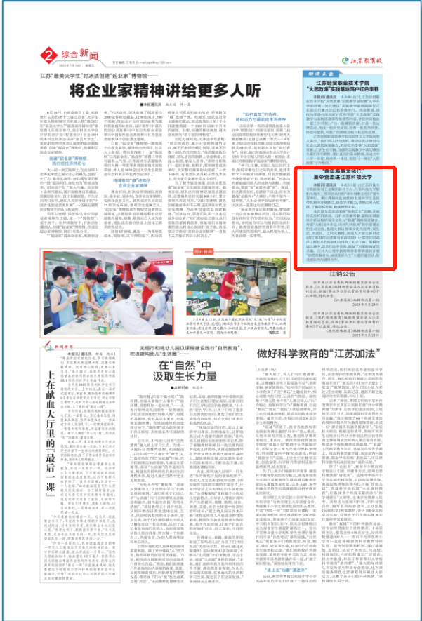 江苏教育报2023年7月14日2版http://epaper.jsenews.com/Article/index/aid/7725207.html