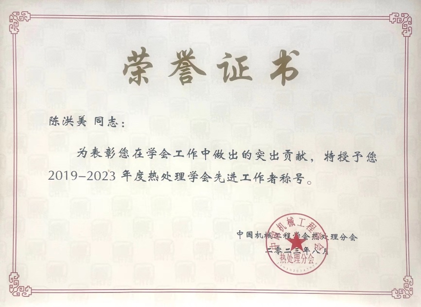 大会以“绿色·低碳·智能”为主题,基于材料产业和装备制造业的基础性研究、前沿性科学研究和热处理新技术新工艺的推广应用。我校材料科学与工程学院许俊华教授做了题为“基于胶囊缓释的宽温域自润滑复合膜和多层膜的设计及协同作用机理”的邀请报告,陈洪美教授和冯迪副教授分别做了题为“凝固方式对稀土镁合金LPSO结构相演变的影响及作用机理”和“喷射沉积7055铝合金的升温时效行为”的分论坛报告。陈洪美教授当选全国热处理学会第十二届理事会理事并荣获热处理学会2019-2023年度“先进工作者”荣誉称号。
