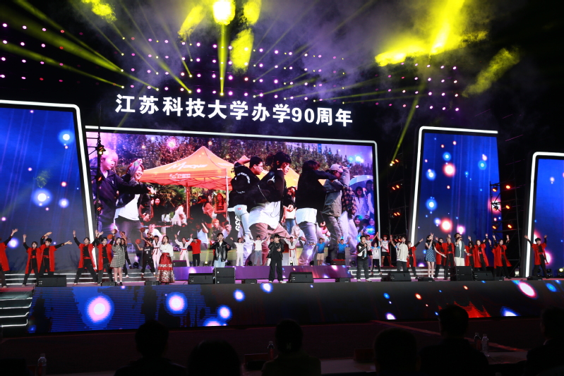 晚会现场,一幅创意自制灯牌点亮了操场一角,制作者体育学院大三学生艾欣祺介绍“从购买材料到制作成品花了五天时间。这是我给学校过生日的专属仪式感!”校团委书记张海洋介绍,文艺晚会参演人员300多位,包括学校团委艺术中心教师、辅导员、学生、离退休教师、学校附属幼儿园小朋友,其中还有7位校友代表。为了致敬办学90周年,导演组从半年前开始筹划编排,全体演职人员利用暑假和十一小长假时间抓紧排练,确保了晚会的华彩呈现。无人机节目总编孙静表示,此次表演是团队主动参与和学校邀请的双向奔赴,节目通过展现办学90周年元素,带来现场极致观感体验。船海学院辅导员刘星在办学80周年时还是一名江科大学生,办学90周年晚会上,作为江科大老师参演《领航》节目。正在河南科技大学读研的2020届毕业生赵青秀参演朗诵《献给你,我的母校》,她表示非常荣幸被邀请与几位优秀校友共同表演,为母校取得的辉煌成就感到非常自豪。在庆典上表演《龙腾长山》的南京邮电大学龙狮团成员、大二国际经济与贸易专业时子涵说,为了此次《龙腾长山》群舞表演,团队花了一个月时间进行排练,非常高兴能参加此次演出。