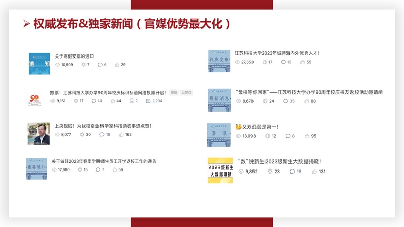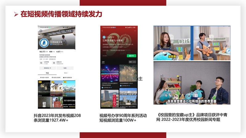 安博网页版登录入口党委宣传部融媒体中心依托“1+6”(1个新闻中心加官方微博、官方微信、官方抖音、官方B站、学习强国号、中国大学生在线校园号)新媒体育人阵地,借助融媒体传播优势,立足校园生活、讲好科大故事,打造网络思政工作新格局。2023年,“安博网页版登录入口”官方微信共发布推文400+篇,总共阅读量262万+;微博共发布450+条,浏览量777万+,创作出《校园里的宝藏up主》《考研学霸宿舍》等一系列兼具创意性、感染力的原创作品;新媒体新闻专题《省高校首家!江科大这门宝藏课程藏不住啦……》获“2022年度江苏教育新闻奖”;微信公众号作品《江科大,是……?》获第二十七届船舶新闻奖。联动线上线下,打造全员参与、全面覆盖、全方位辐射的思政育人体系,融媒体中心参与毕业典礼、办学90周年晚会等学校大型活动,精心策划校庆灯光秀、证件照摄影棚等系列广受欢迎的线下活动;统筹开展“安博网页版登录入口校园文化创意大赛”“全国大学生网络文化节”“世界读书日主题征文比赛”等活动;组织开展2023年度江苏省高校网络思政“金微课”征集评选、江苏2023“五个一批”网络精品征集评选展播等活动,引导广大师生积极参与网络产品的创作生产,让网络思政教育有声有色、入耳入心。