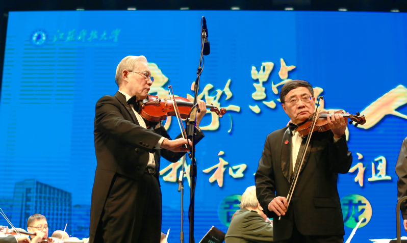 演出过程中,湖北省人民政府原副省长段轮一、原解放军301医院消化内科主任医师梁浩等乐团成员先后分享了自身与音乐结缘的人生故事。国家一级导演陈燕民代表满天星业余交响乐团向安博网页版登录入口赠送了诗作书法,周宏根代表学校接受赠予。