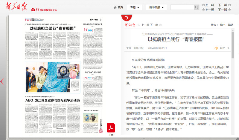 2024年5月9日新华日报3版头条 https://xh.xhby.net/pc/layout/202405/09/node_3.html#content_1324817