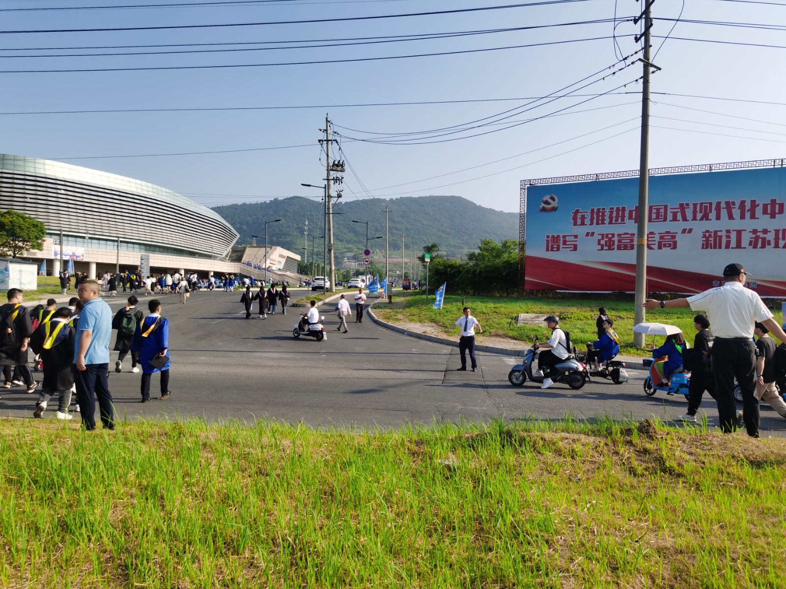 典礼当天,按照安排部署,分时间段开放西大门,供参加典礼人员出入;在长香路与丹徒交警铁骑队执行交通疏导任务;在长风路配合交通辅警协助师生安全穿越马路;安排安保力量20余人在共享体育馆各出入口;在场内设置了流动应急岗,维护学生进退场通道秩序及主席台周边秩序,防止拥堵踩踏事故的发生;加强了校园及会场内巡查力度,执行身份查验,严防无关人员进入;交警大队和长山路派出所出动10余名警力,共同做好校内及周边道路交通秩序、治安管理、应急情况处置等工作。以上种种举措和全体安保人员凝心聚力、认真负责、恪尽职守、密切配合的工作态度确保了典礼期间治安状况良好、交通秩序井然,活动顺利开展。