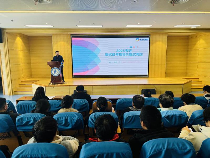 随着考研初试成绩发榜,学院第一时间对学生达线情况、调剂意愿等进行全面统计分析,为各系部做好复试学子精准指导提供依据。2月26日下午,学院在图书馆B102报告厅举办2025届考研复试指导培训会,通过“专家把脉+朋辈引路+学院赋能”三重路径,助力考研学子科学备战复试。培训活动线上线下同步开展,考研培训机构带来复试与调剂的公益讲座,主讲老师从复试流程到调剂策略等方面,逐一剖析成功上岸的关键点、重点和难点。他结合实例,针对英语口语听力、专业课复习等学生普遍关注的难点提出实操建议,强调“信息搜集与主动沟通是复试成功的基石”,为学子厘清备考方向,并针对调剂志愿填报等具体问题答疑解惑。