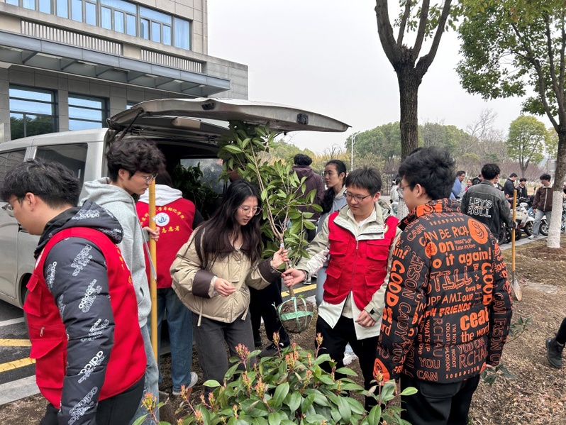 3月12日,植树节当天,微雨初歇,万物复苏,校园内一片生机盎然。自动化学院、体育学院的老师们与思源青年志愿者服务社、晨曦青年志愿者协会的70多位志愿者们共同参与此次活动。