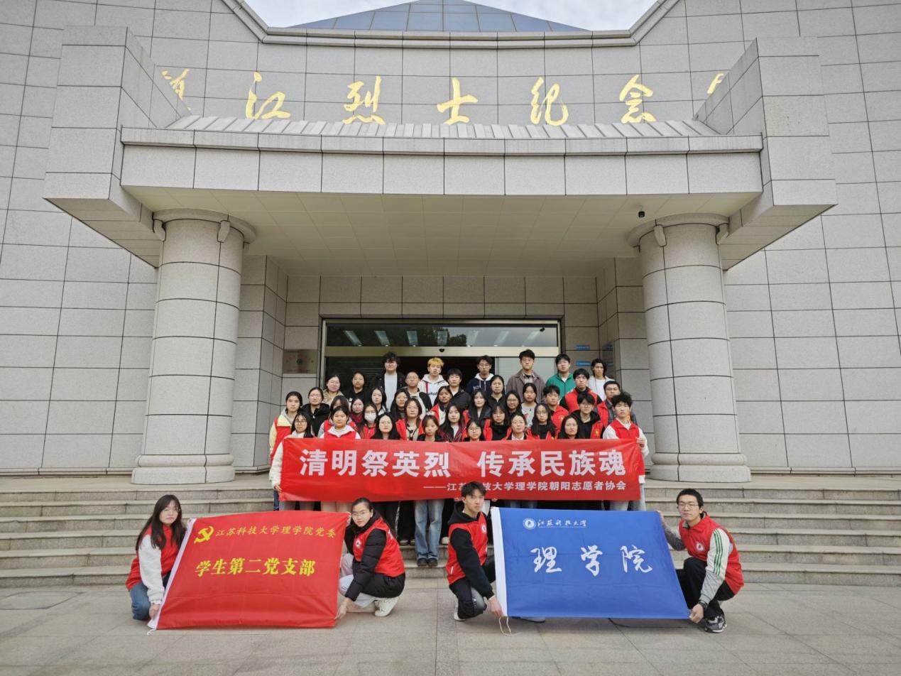为缅怀革命先烈、传承红色基因、纪念中国人民抗日战争暨世界反法西斯战争胜利80周年,3月29日,理学院学生第二党支部、朝阳志愿者协会组织学生党员、大学生志愿者赴镇江市烈士陵园,开展“清明祭英烈,传承民族魂”主题纪念活动,通过庄严肃穆的仪式与实践活动,重温革命历史,感悟和平年代的来之不易。