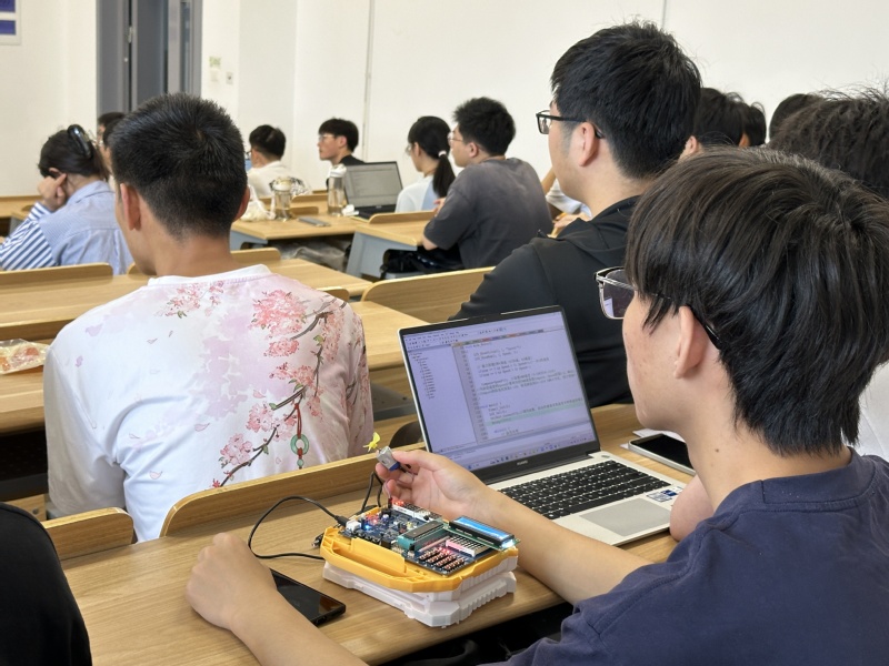 郭峰在活动中强调,“宿舍实验箱”项目作为融入生活场景的实践载体,打破了传统实验室的时空限制,为学生提供了将理论知识转化为创新实践的常态化平台,对培养自主学习能力与工程思维具有重要意义。他指出,此次验收工作优化了流程,通过细化验收标准、强化现场实操考核、增设技术难点答辩环节等方式,切实提升项目验收的严谨性与专业性,旨在真正检验学生对系统设计、硬件调试、逻辑编程等综合能力的掌握程度。“验收不是终点,而是推动学生深入探索的起点,学院希望通过规范化的实践检验机制,引导同学们在真实场景中锤炼解决复杂问题的能力,让实验箱成为培育创新思维的‘孵化器’。”