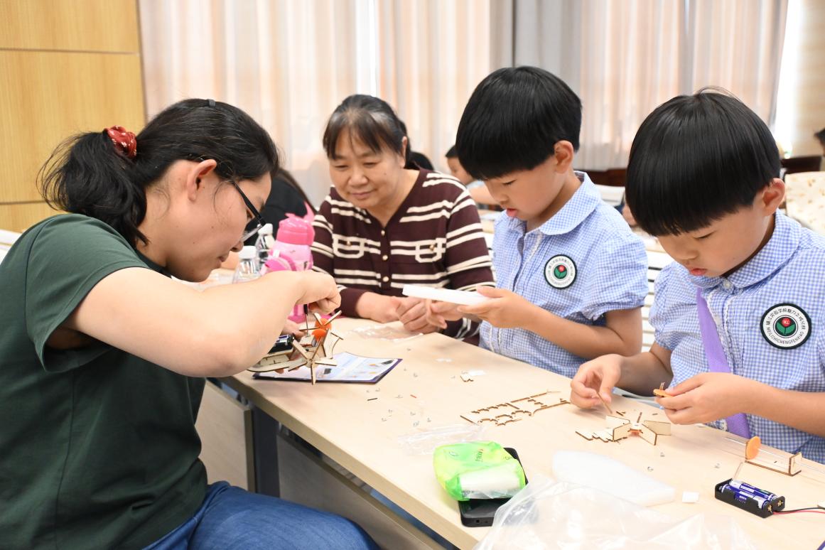 在船海学院学生志愿者的专业指导下,亲子家庭共同投入到航模制作的实践中。活动现场气氛热烈,欢声笑语不断。孩子们充分发挥想象力与创造力,与家长默契配合,从拼装细小的零件,到精心调试船体结构,每一个步骤都凝聚着他们的智慧与心血。在家长的协助下,一艘艘精致的模型小船逐渐成型。这不仅是一次手工技能的锻炼,更是亲子间深度沟通与协作的桥梁,既加强了亲子互动,拉近了亲子关系,也让孩子们在动手实践中体验到了无尽的乐趣,进一步加深了他们对科学探索的浓厚兴趣。
