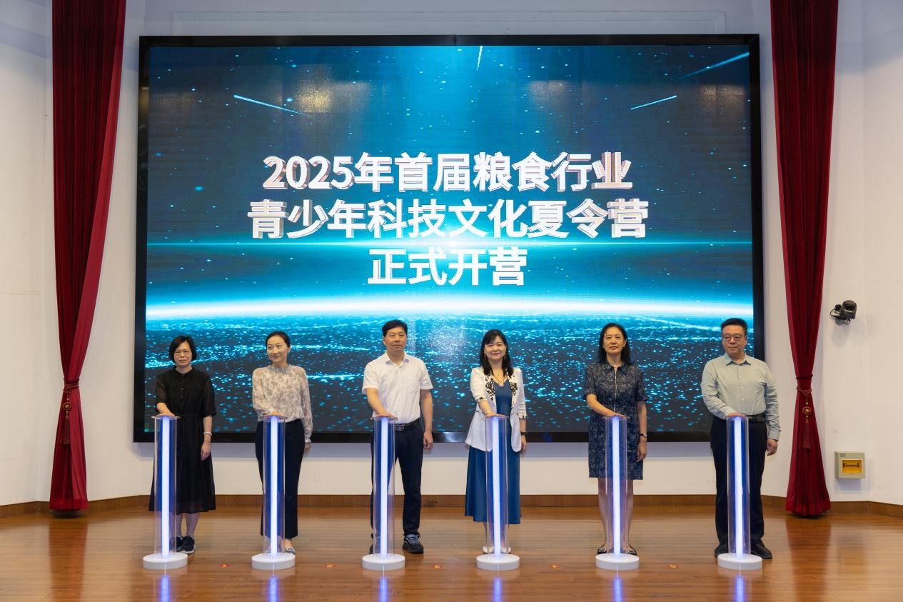 最后,在各位领导的见证下,本届夏令营正式启动。据悉,本届夏令营既是对去年江苏省粮食科技夏令营成功经验的深化与拓展,更是依托行业力量,共同打造国家级青少年粮食科普教育平台的新起点。营员将在后续6天中走访镇江、南京、杭州三座城市,参观粮食生产基地、粮食储备库等,亲身体验粮食从田间到餐桌的全过程;聆听专家学者的讲座,系统学习粮食储存、加工背后的科技密码;走进粮食博物馆,在历史长河中触摸五千年粮食文化的深厚脉络。通过企业实习与科普探索,引导青少年从“节粮爱粮”生活实践上升至“科技兴粮”产业担当,而这场跨越江浙的青春接力,也将为端牢“中国饭碗”注入澎湃的新生力量。