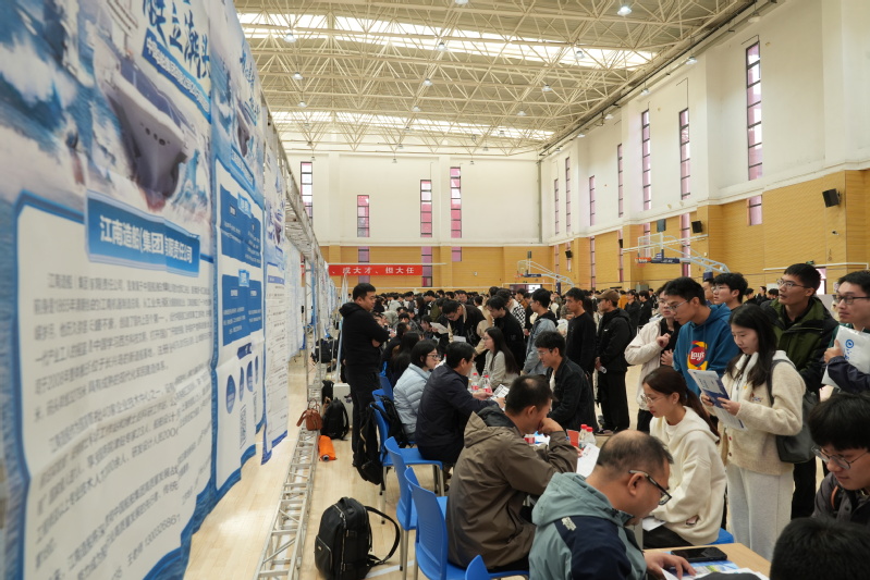“三维联动”,访企拓岗出新效。学校创新实施“技术合作拓宽岗位供给面、校友资源提升人岗匹配度、产教融合优化人才培养链”的“三维联动”访企拓岗机制。2025年,上海校友会主动对接母校,组织校友企业组团返校招聘。校友企业家代表鲍波表示:“我们希望通过校友平台反哺母校,助力学弟学妹职业启航。”船海学院党委加入崇川区船舶海工产业链党委,揭牌大学生就业实践基地,构建起“党建+产业+人才”三位一体的发展新格局。
