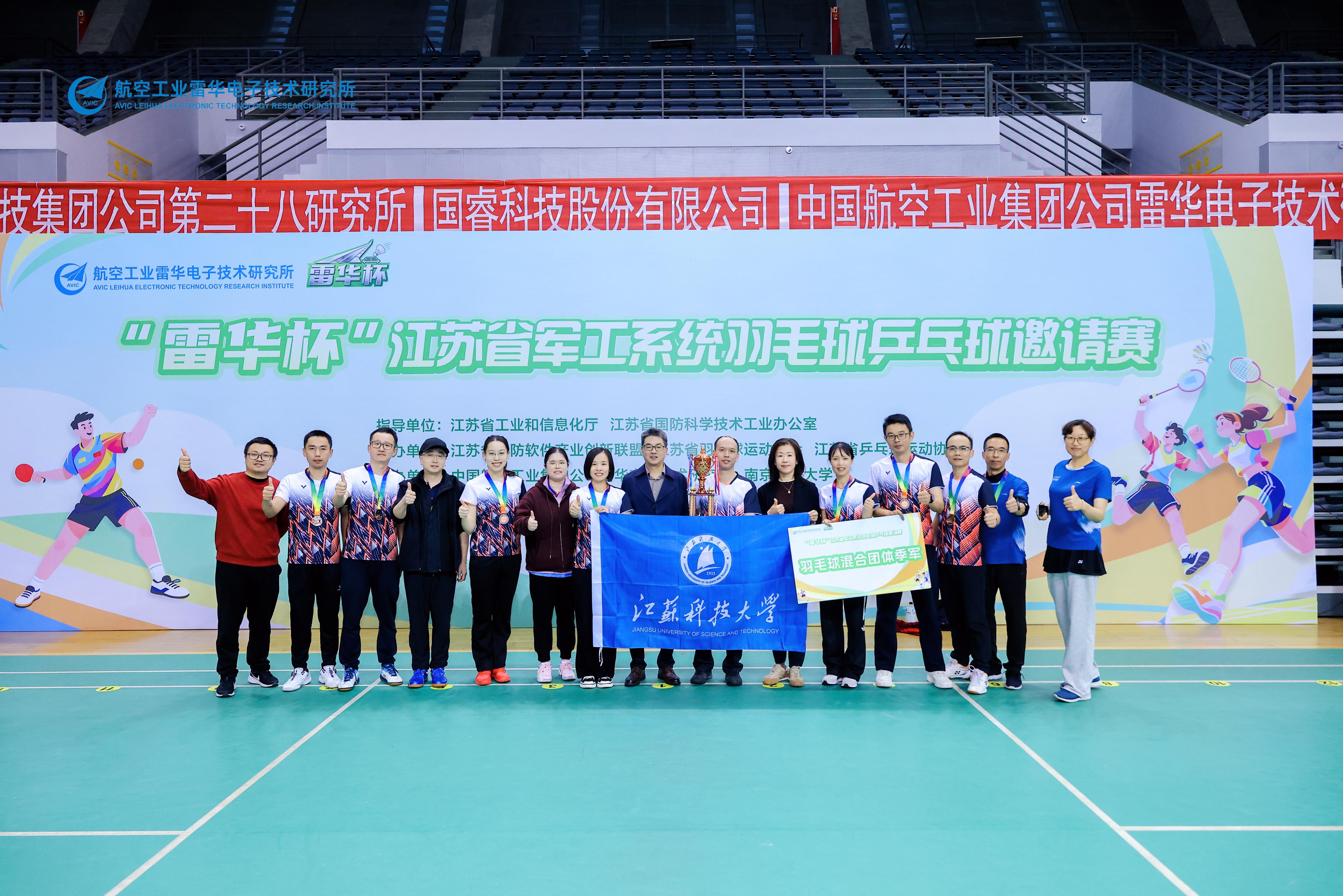 11月15日至16日,在“雷华杯”江苏省军工系统羽毛球乒乓球邀请赛中,我校羽毛球队、乒乓球队团结协作、奋勇拼搏,分别取得羽毛球混合团体季军、乒乓球混合团体第四名的好成绩,充分展现了新时代高校教职工昂扬向上的精神风貌和良好的体育竞技水平。